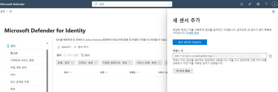3-1. Defender for Identity 센서 설치 패키지 및 액세스 키의 다운로드한 복사본입니다.