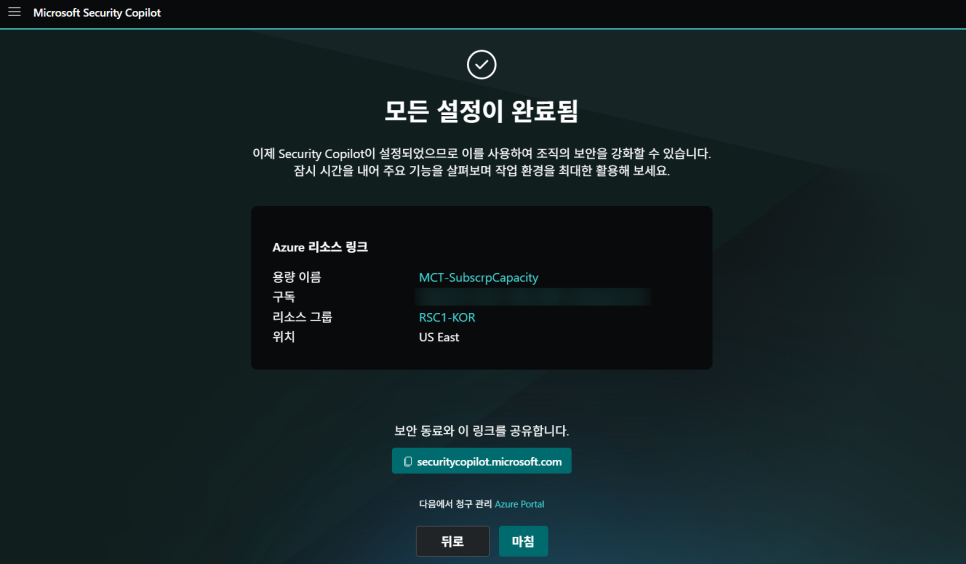 이렇게 Security Copilot 온보딩을 완료하였습니다.