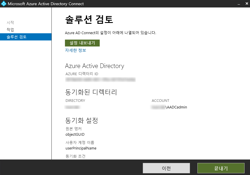 - AADC Wizard 실행 > 현재 구성 보기 또는 내보내기 > ACCOUNT