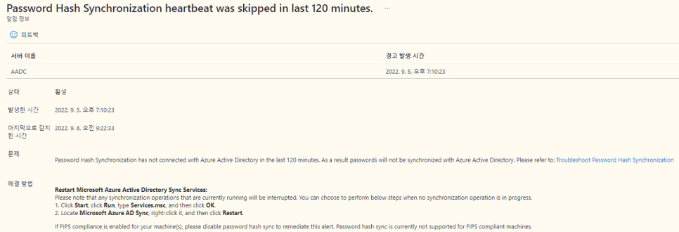 [AADC] Password Hash Synchronization heartbeat skipped 오류 해결 방법 본문
