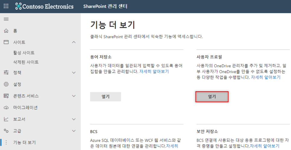 3. [사용자 프로필]에서 [열기]를 선택합니다.