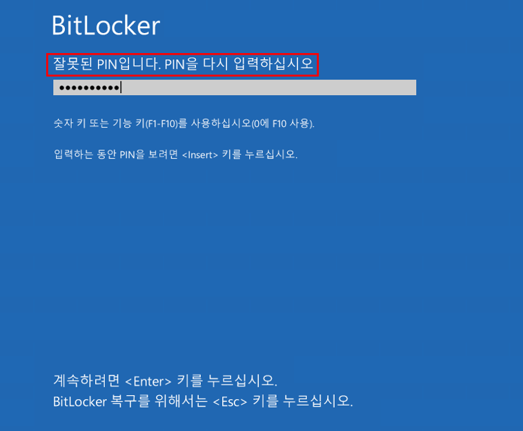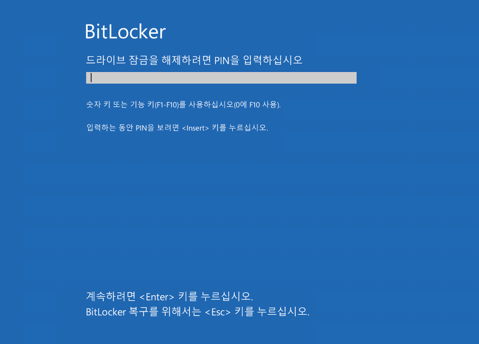 Bitlocker가 구성된 PC는 장치 부팅 시 자동으로 활성화 되어 장치를 부팅 할 때마다 PIN 입력을 요구합니다.