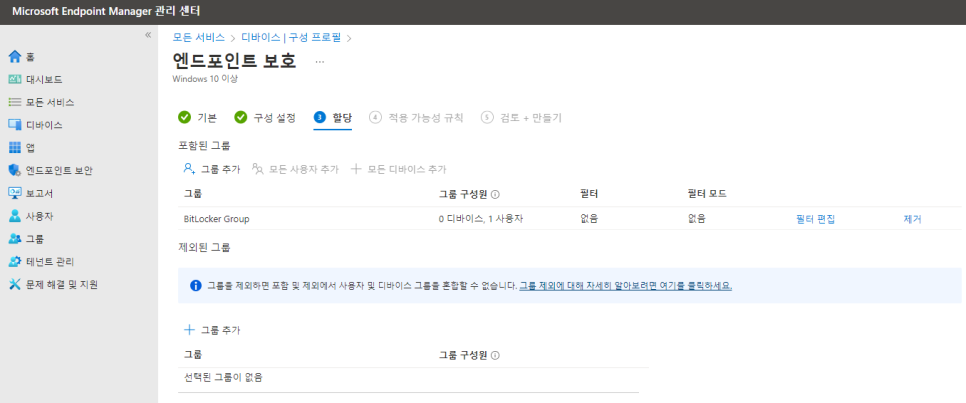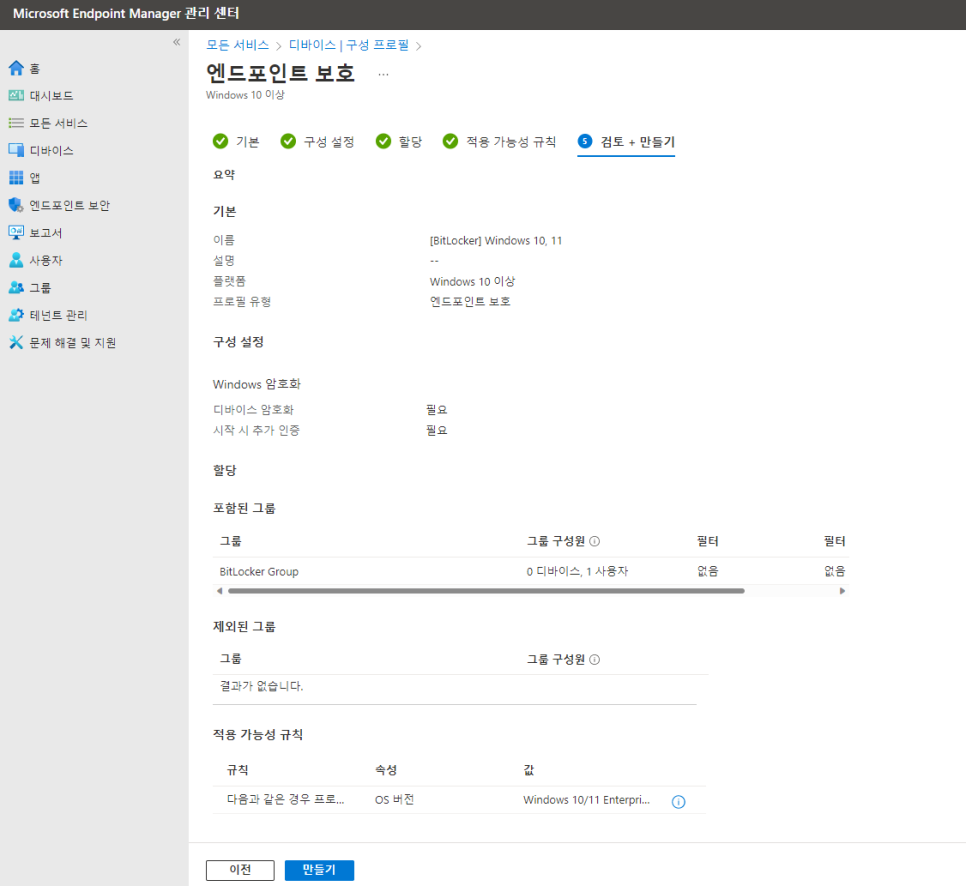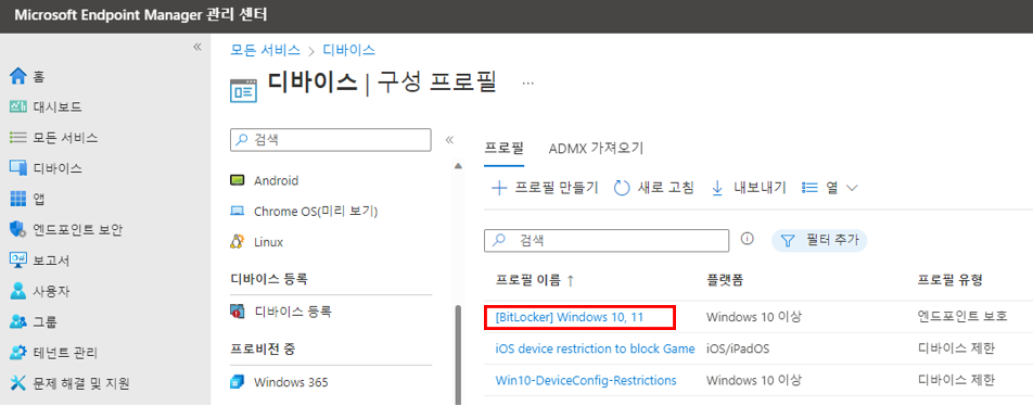 [MEM] Intune Bitlocker 구성 (구성 프로필) 본문
