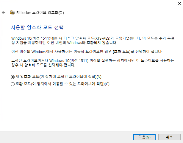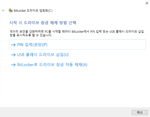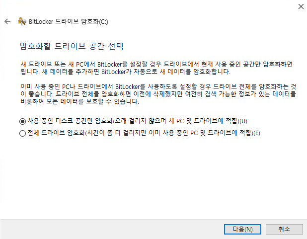 2. BitLocker 정책 대상자 PC에서의 BitLocker 구성 과정