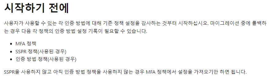 레거시 MFA 와 SSPR을 간단하게 알아보았으니 다음은 마이그레이션 방법을 살펴보겠습니다.