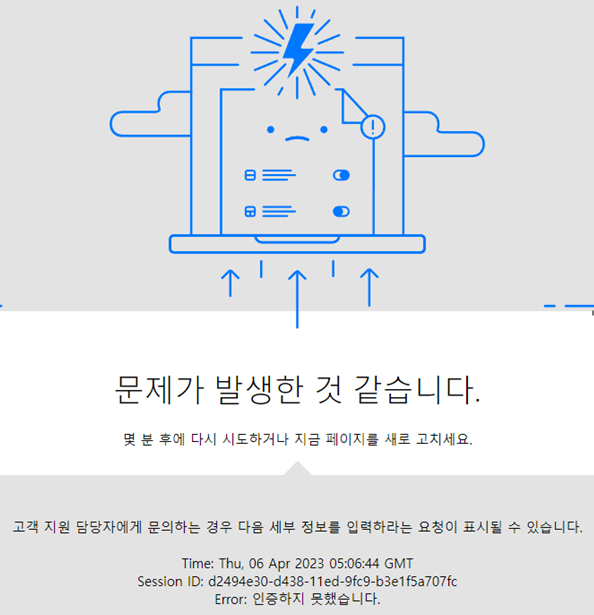 Power Automate(Flow) 서비스에 회사 계정으로 로그인 시 아래와 같은 오류가 발생하는 경우가 있습니다.
