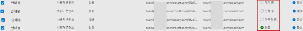 - 상태 순서: 대기 중 > 진행 중 > 마무리 중 > 완료