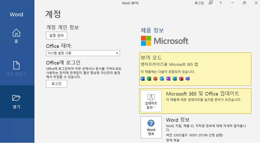 [Microsoft365] Microsoft 365 Apps 뷰어 모드 본문
