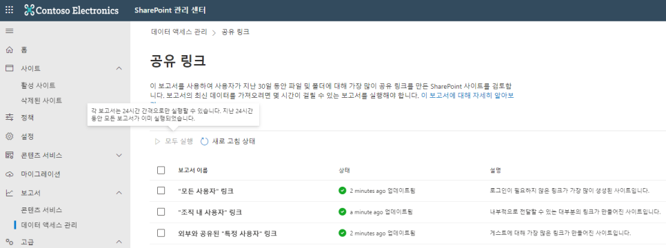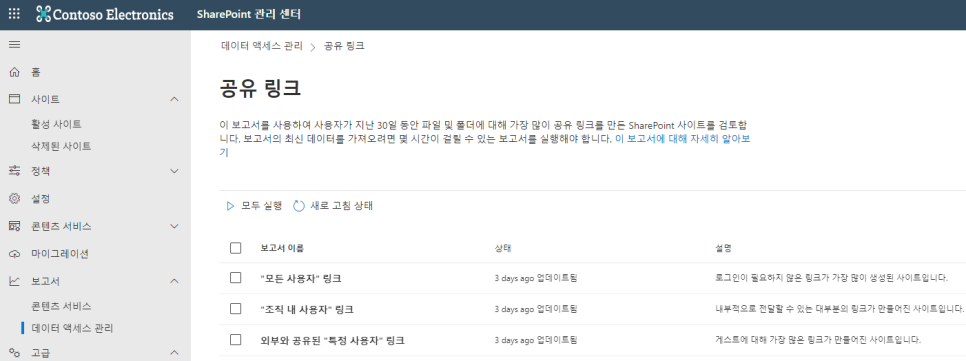 [SharePoint Online] SharePoint 사이트에 대한 데이터 액세스 관리 보고서 본문