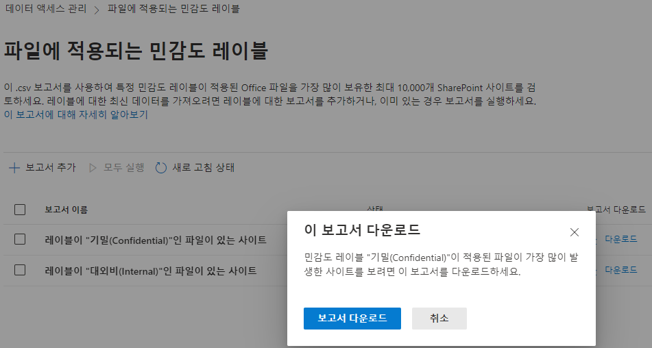 3. 파일에 적용되는 민감도 레이블 보고서
