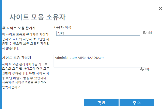 OneDrive 사이트에 대해서는 "사이트 모음 소유자" 권한이 필요합니다.