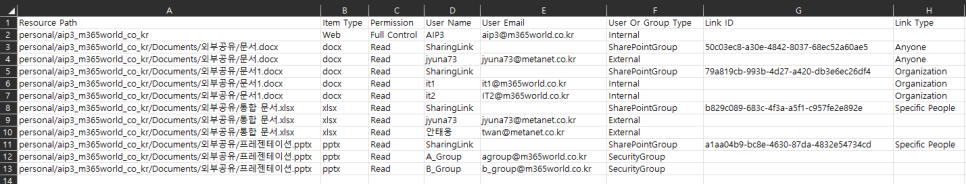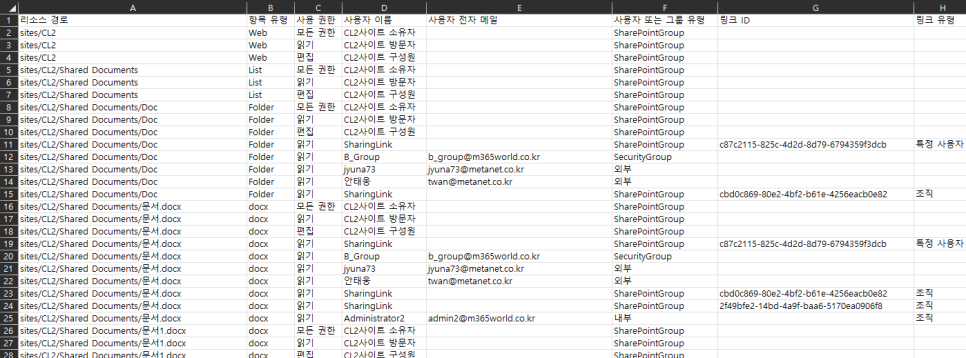 [SharePoint Online] SharePoint 및 OneDrive 사이트에서 파일 및 폴더 공유에 대한 보고서 내보내기 본문