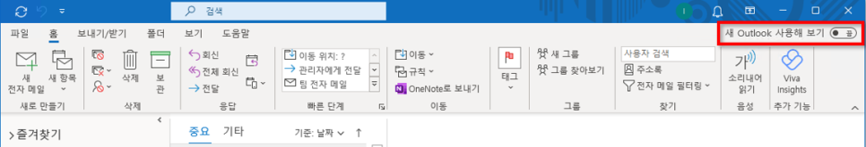 1. 데스크톱용 Outlook 우측 상단에 나타나는 "새 Outlook 사용해 보기" 토글 On/Off